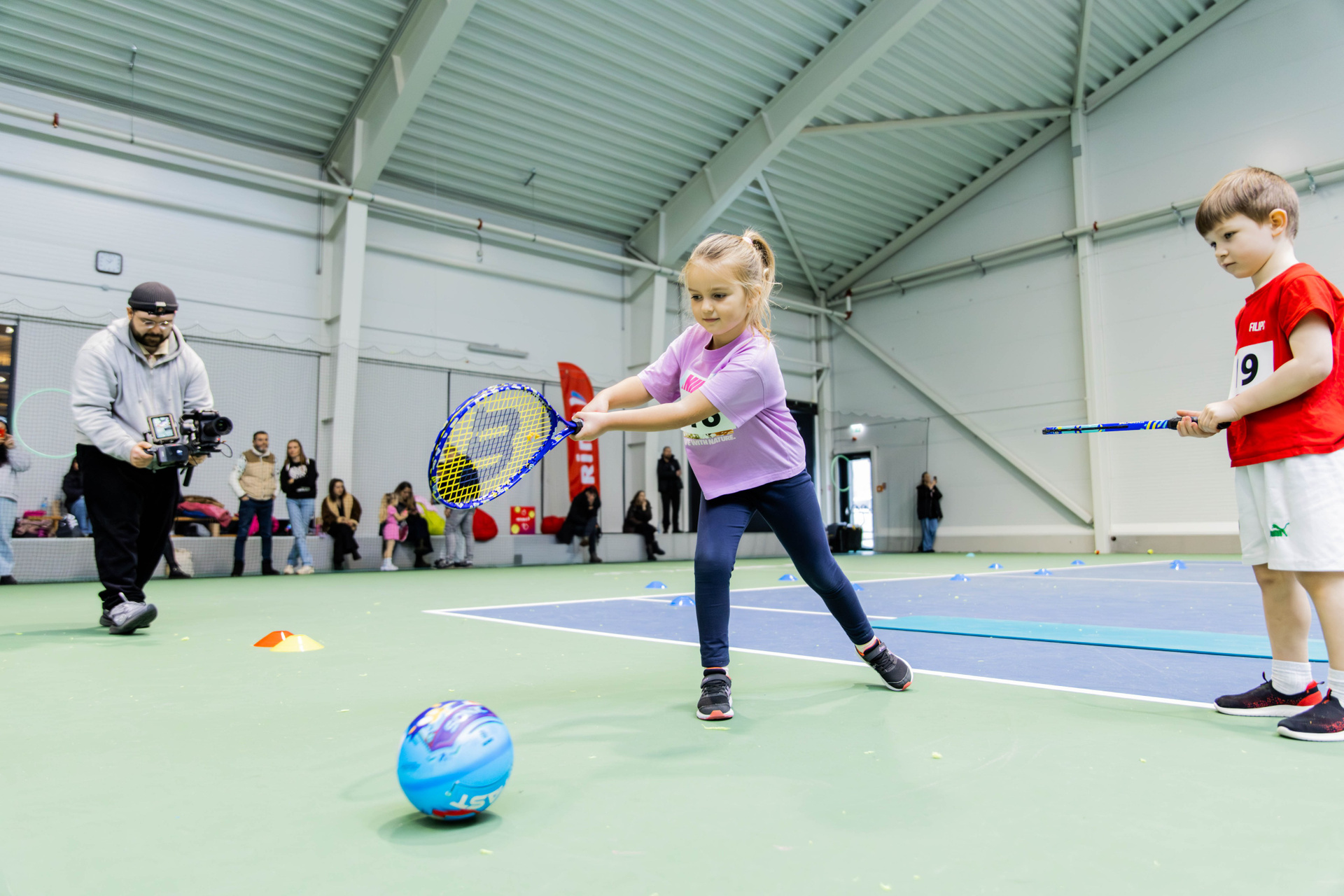 - Kids experiencing tennis for the first time